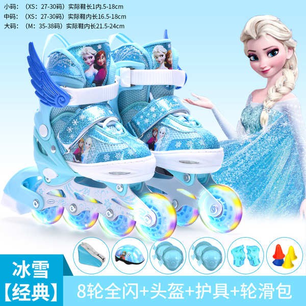Kasut roda disney frozen skate skates princess children's full set roller skates full flash skate shoes men's and women'.